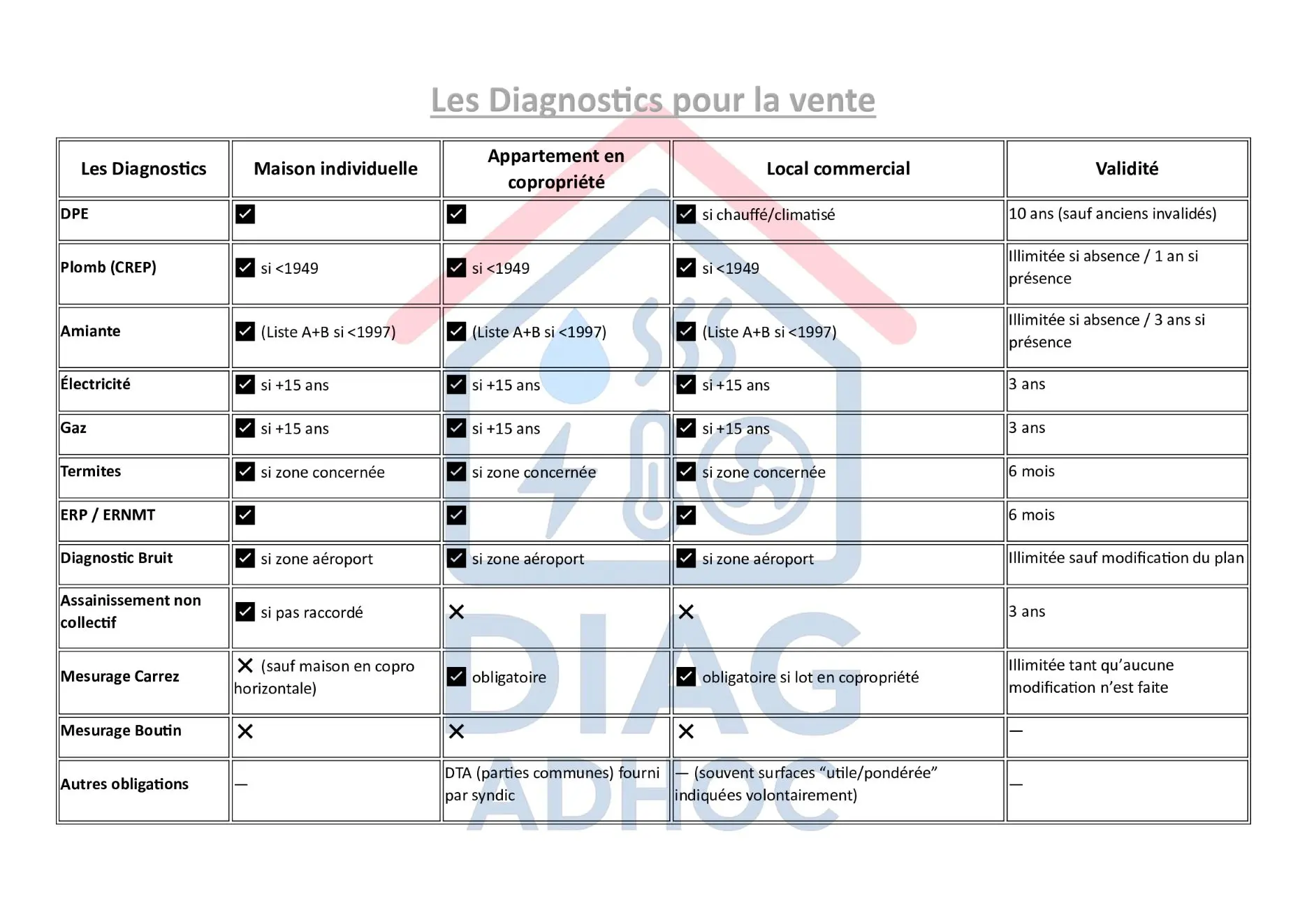 Diagnostics techniques (plomb, amiante, gaz, électricité, avec ou sans mention)