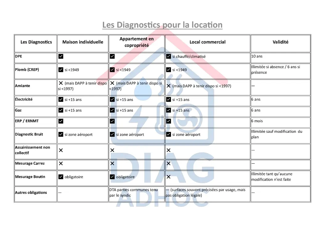 C’est pourquoi nous mettons à votre disposition un outil pratique : un tableau récapitulatif qui vous permet en un coup d’œil de savoir quels diagnostics vous concernent.